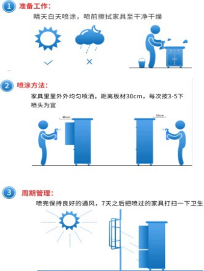 使用说明 1、将本品喷在家具内壁裸露处,如:衣柜内壁隔板、背板;组合家具切面、拉手;复合地板断面;新车内饰等。 2、100 平方空间使用本品 3-4 瓶即可。 3、每 7 天为一个处理周期,味道大的板材可增加用量和处理次数。 4、处理完毕后使用湿布擦除,不影响美观处可保留不做清理,加强巩固处理效果。 招商加盟 我们相信,环境是人类共同的未来,也是我们投身环保事业的动力和方向。我们邀请您一起,加入我们的环保旅程,共建人类可持续发展的健康友好环境。 招商热线:0532-85812115 |